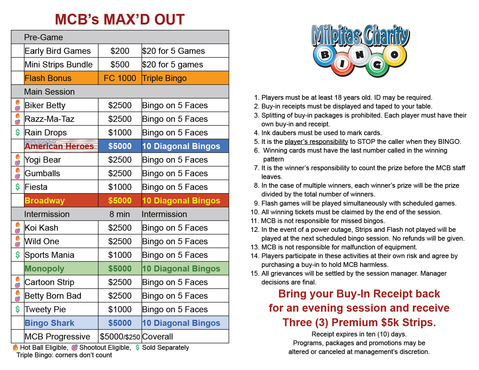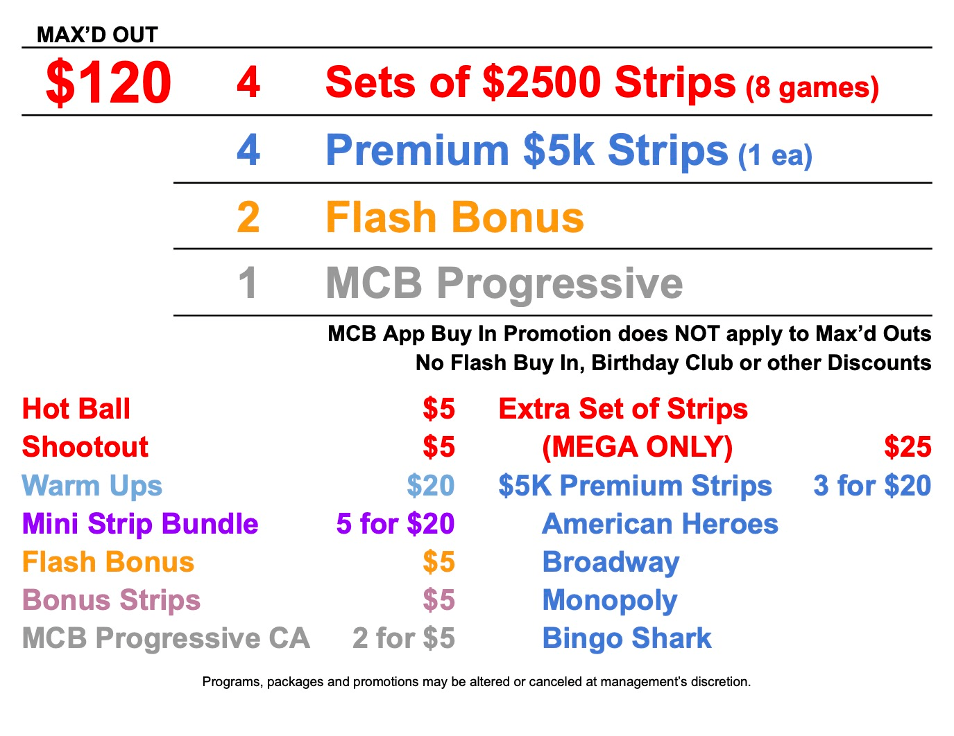 (Limit: FOUR $2500 Sets Of Strps per player / Limit: FOUR Players Per Table)